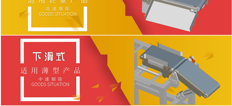 2、選型注意產(chǎn)品在皮帶線上的運(yùn)動(dòng)方向,產(chǎn)品透明或半透明請(qǐng)與我司聯(lián)系;